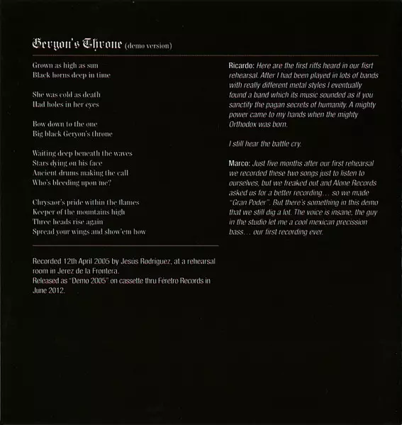 Originating from Seville in southern Spain, Orthodox is an avant-garde doom metal band who add strong free jazz-tinged influences to their essential metal sound, founded on hypnotic repetition of quasi-mystical intensity and slow, torpid rhythms befitting people from a city of crus...