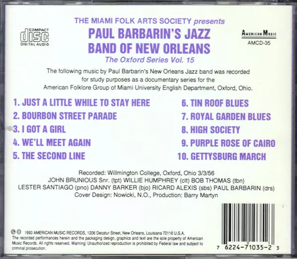 | Künstler | Paul Barbarin And His Jazz Band |
