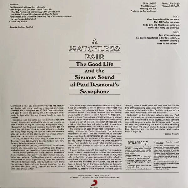 Die acht Titel von »Easy Living« sind sowieso der Höhepunkt der Karriere von Desmond, nachdem er endlich den Sprung aus der Formation von Dave Brubeck geschafft hatte. Und der Wechsel von reinem Akkordspiel und Single-Notes von Jim Hall ist luftiger, inspirierender als die fetten Klaviercluster des Ex-Chefs. Nicht zu vergessen auch, dass die Häl...