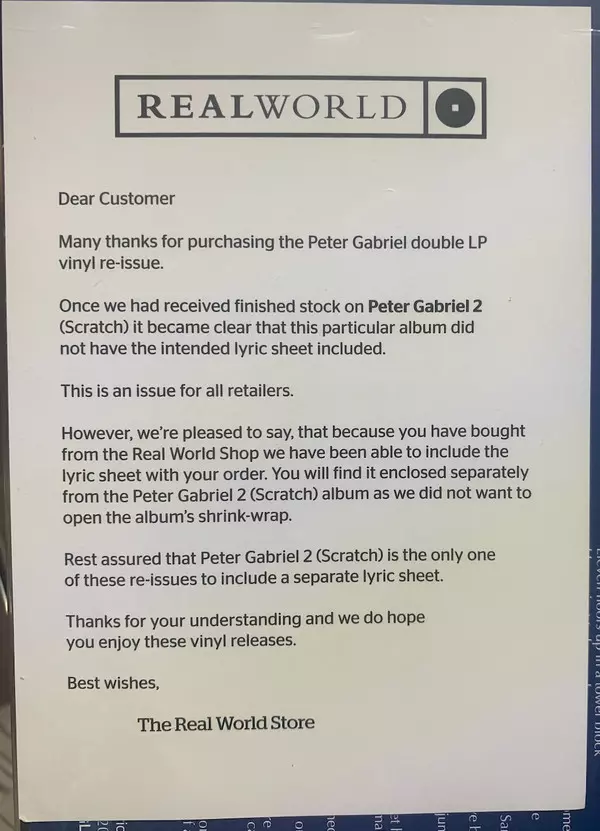 | Verlag | Real World Records | Charisma |
