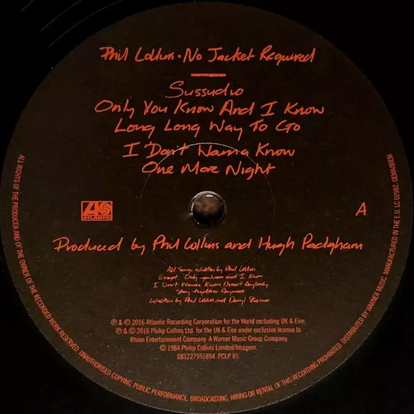 Completely remastered Phil Collins album "No Jacket Required" As part of the extensive reissue series "Take A Look At Me Now", Phil Collins' third studio album "No Jacket Required" was re-released in 2016. Collins' seventh solo album "Testify" was released at the same time. "No Jacket Required" was released in early 1985 and, along with "...But ...