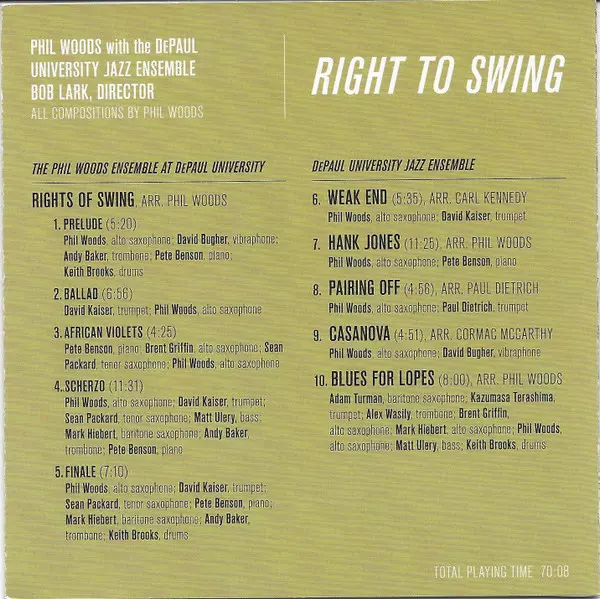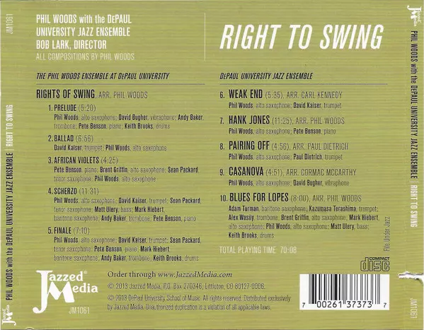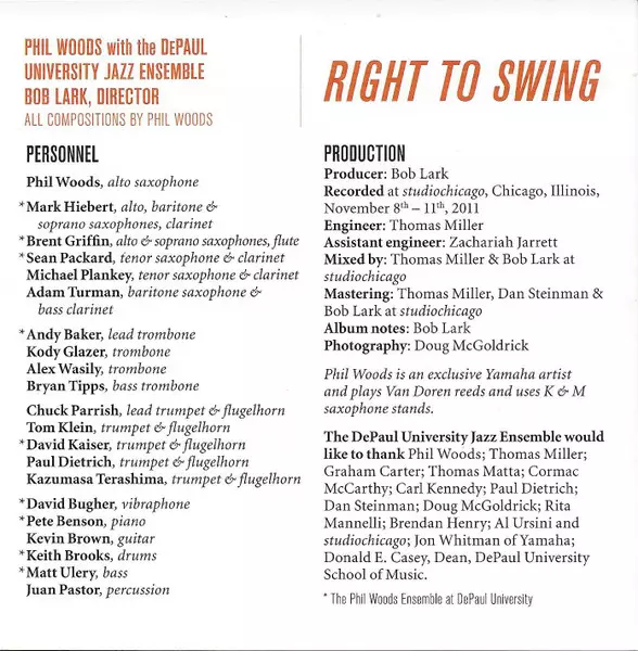 | Phil Woods Ensemble At DePaul University: Rights Of Swing | |||