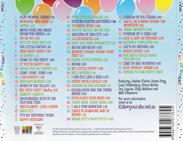| Arranged By Peter Dasent | Written By [It's My Birthday Today] Baysing, T. Dasent | Written-By [Der Glumph] Traditional | Written-By [Happy Birthday] Mildred J. Hill, Patty Smith Hill | Written-By [Humpty Dumpty] Traditional | Written-By [Kookaburra Sits in The Old Gum Tree] Marion Sinclair | Written-By [Shoo Fly] Traditional | |||