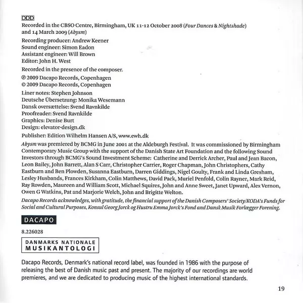 | Künstler | Poul Ruders | Oliver Knussen | Birmingham Contemporary Music Group |