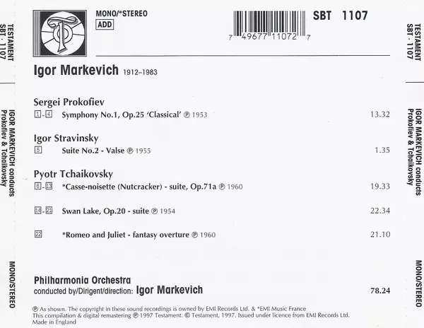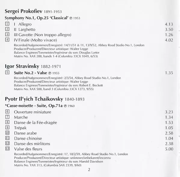 | Künstler | Pyotr Ilyich Tchaikovsky | Philharmonia Orchestra | Sergei Prokofiev | Igor Markevitch |