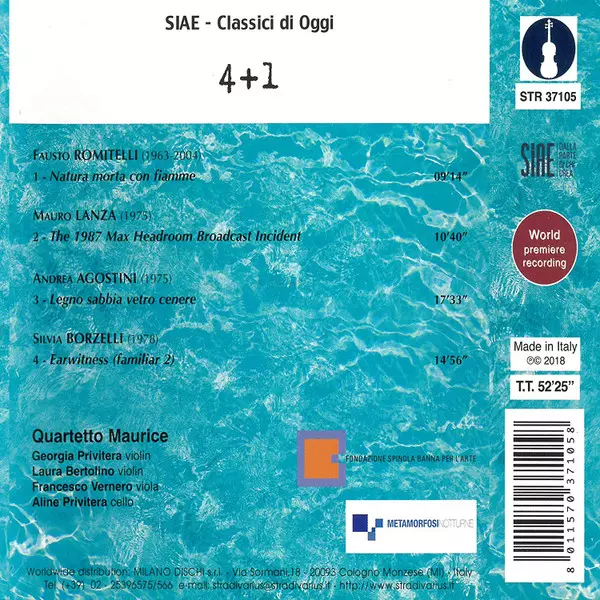 | Künstler | Fausto Romitelli | Mauro Lanza | Andrea Agostini | Quartetto Maurice | Silvia Borzelli |