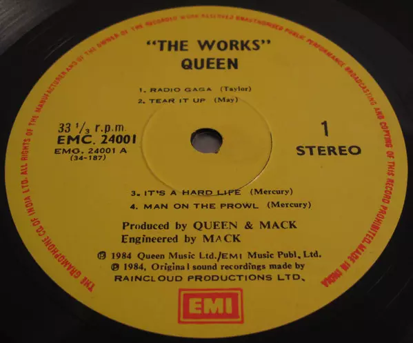 Queen : The Works is an album released by the British rock band Queen in 1984. The album was a commercial success, reaching number two in the United Kingdom and number three on the Billboard 200 chart in the United States. The album was certified platinum by the Recording Industry Association of America (RIAA) for shipping one million copies in ...