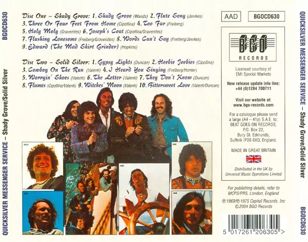 Quicksilver Messenger Service: Shady Grove / Solid Silver Die Version auf 2CD in Standard- Auflage. Diese besondere Auflage wurde veröffentlicht in UK im Verlag BGO Records am 9. November 2004. Album Genres übergreifend Rock, Psychedelic rock und Classic Rock.
