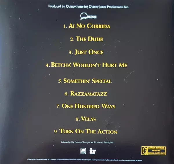 Arranged By [Rhythm] Quincy Jones | Arranged By [Strings, Synthesizer] Johnny Mandel | Bass Louis Johnson | Concertmaster Gerald Vinci | Electric Piano, Synthesizer Greg Phillinganes | Guitar, Harmonica, Whistle Toots Thielemans | Programmed By [Synthesizer] Ian Underwood | Recorded By Mike Butcher