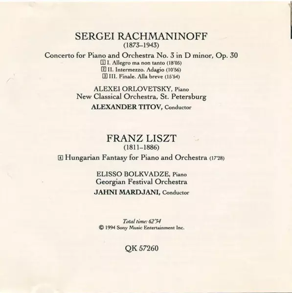 | Künstler | Franz Liszt | Sergei Rachmaninoff | Alexander Titov | Jahni Mardjani | Georgian Festival Orchestra | New Classical Orchestra, St. Petersburg |