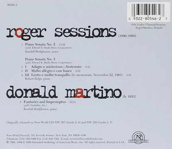 | Künstler | Roger Sessions | Robert Helps | Donald Martino | Randall Hodgkinson |