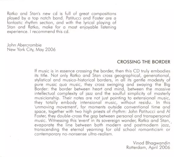 | Künstler | John Patitucci | Al Foster | Ratko Zjaca | Stanislav Mitrovic |