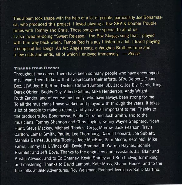 Baritone Guitar Joe Bonamassa | Bass Michael Rhodes | Drums Greg Morrow | Guitar Jack Pearson, Josh Smith (5) | Horns Lee Thornburg | Horns, Arranged By [Arrangement] Paulie Cerra | Keyboards [Keys] Reese Wynans | Lead Vocals Bonnie Bramlett, Jimmy Hall | Written-By Doyle Bramhall, Stevie Ray Vaughan