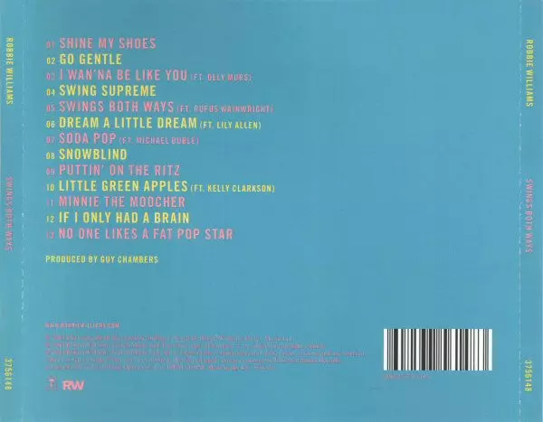 Robbie Williams Swings Both Ways Robbie Williams swingt wieder. Auf "Swings Both Ways" präsentiert er Pop-Klassiker als Swing-Versionen und liefert dazu eine Reihe neuer Songs. Für die neuen Stücke hat er sich (endlich) wieder mit Guy Chambers zusammengetan, mit dem er schon früher erfolgreiche Hits produziert hatte. Sechs der Songs auf "Swings ...