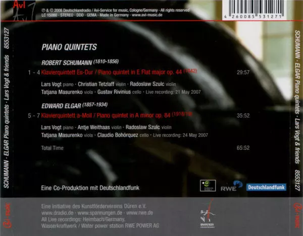 | Künstler | Robert Schumann | Sir Edward Elgar | Tatjana Masurenko | Christian Tetzlaff | Radoslaw Szulc | Lars Vogt | Antje Weithaas | Gustav Rivinius | Claudio Bohórquez |