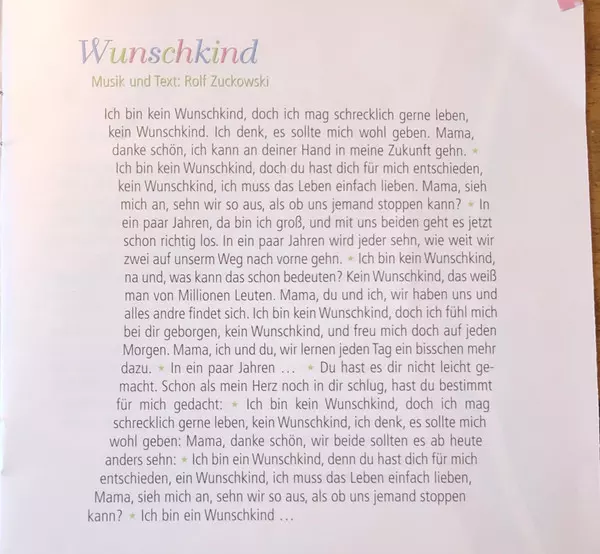 | 2 | Rolf Zuckowski, Anuschka Zuckowski: Wie Schön, Das Du Geboren Bist (Neuaufnahme Mit Text Zur Geburt) | 2:27 min | |