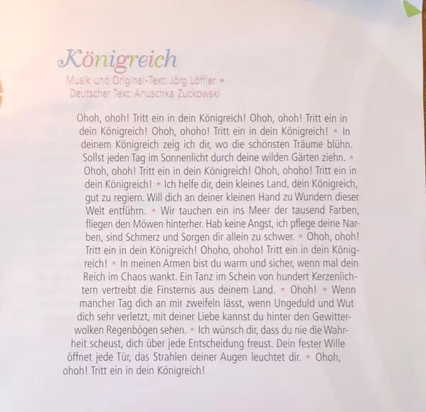 | Lyrics By [Deutscher Text] Anuschka Zuckowski | Music By, Lyrics By Jörg Löffler | |||