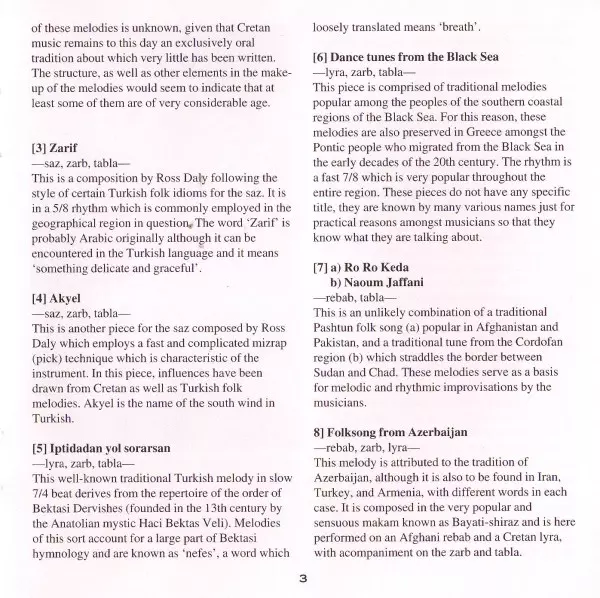 | Künstler | Ross Daly | Djamchid Chemirani | Irshad Hussain Khan |