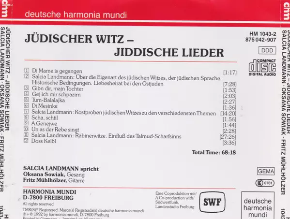 | Titel | Jüdischer Witz Jiddische Lieder |