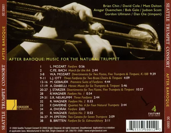 Seattle Trumpet Consort: After Baroque: Music For The Natural Trumpet Die Version auf CD in Standard- Auflage. Diese besondere Auflage wurde veröffentlicht in USA im Verlag Origin Classical am 25. Oktober 2012. Album Genres übergreifend Klassische Musik und Barockmusik.