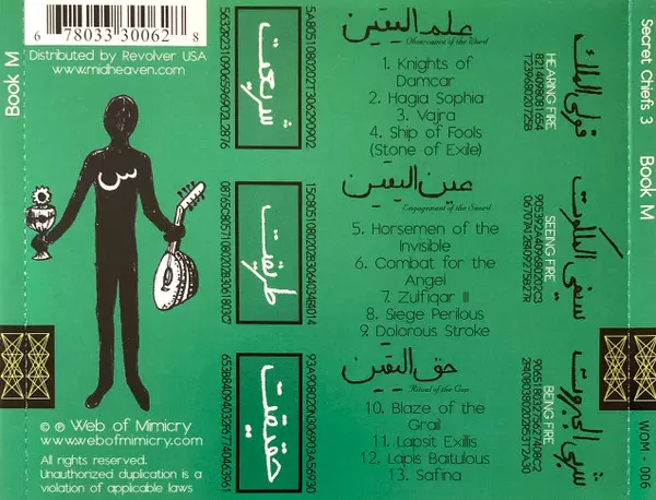 Secret Chiefs 3: Book M Die Version auf CD in Standard- Auflage. Diese besondere Auflage wurde veröffentlicht in USA im Verlag Web Of Mimicry am 18. September 2001. Album Genres übergreifend Rock, Folk, World, & Country, Elektronische Musik, Experimental und Abstract.