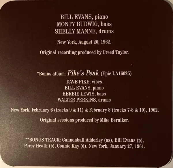 | Künstler | Bill Evans | Shelly Manne | Monty Budwig |