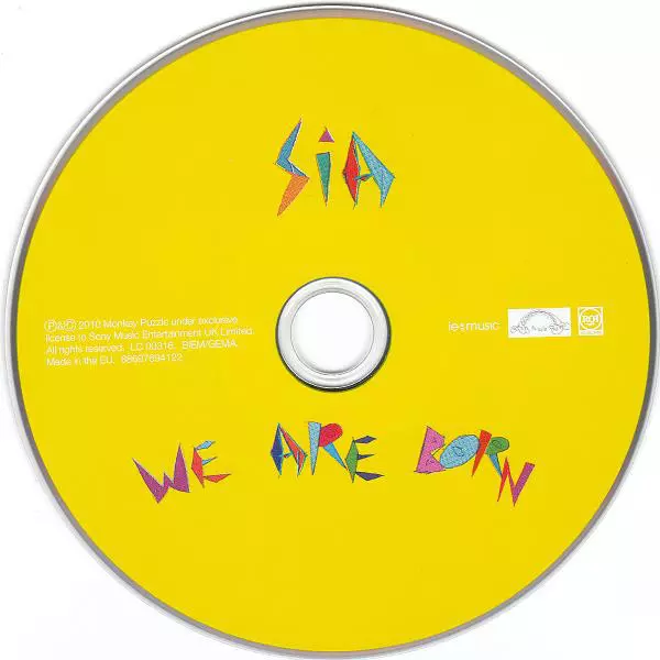 Sia: We Are Born Die Version auf CD in Standard- Auflage. Diese besondere Auflage wurde veröffentlicht in Europa im Verlag Sony Music In Zusammenarbeit mit Monkey Puzzle Records, ie:music und RCA am 20. Juli 2010.