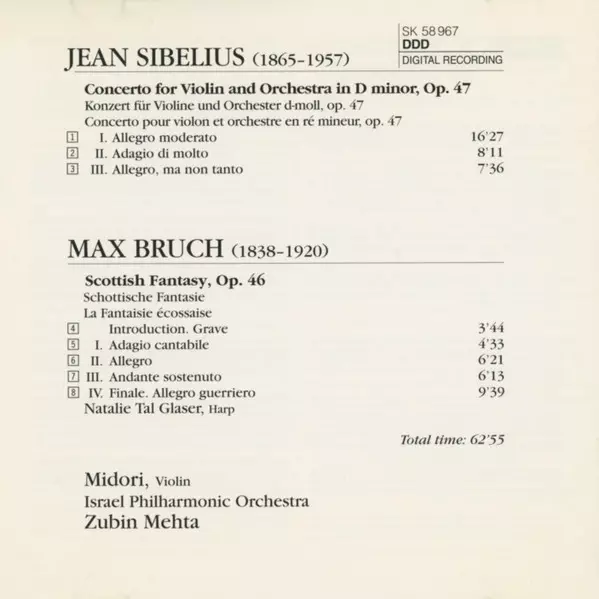 | Künstler | Zubin Mehta | Jean Sibelius | Max Bruch | Israel Philharmonic Orchestra | Midori Goto |