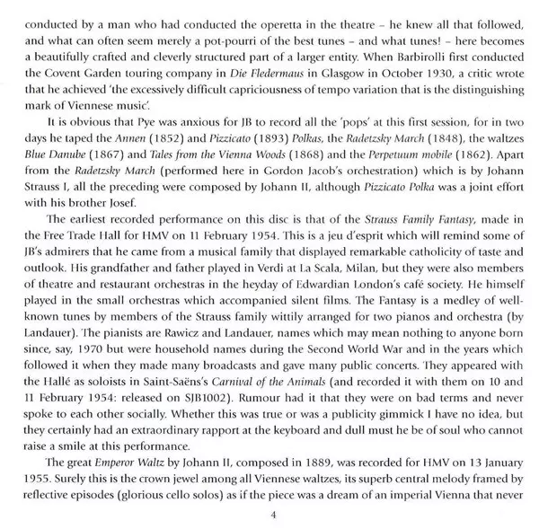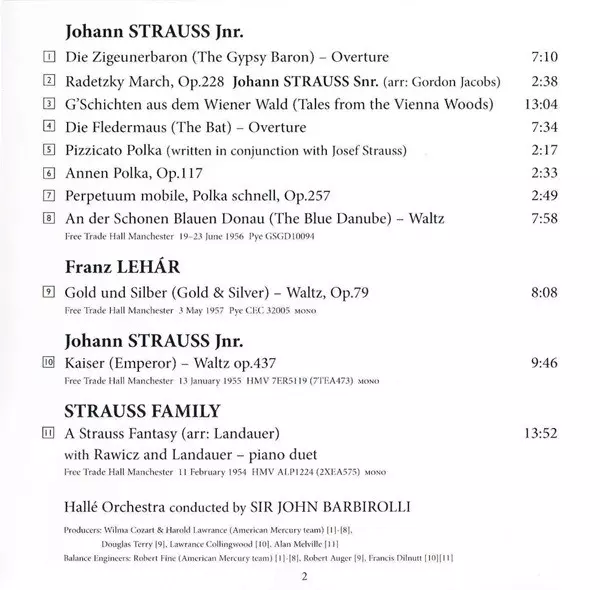 Composed By Johann Strauss Jr. | Conductor Sir John Barbirolli | Engineer [Recording] Francis Dillnutt | Orchestra Hallé Orchestra | Producer Lawrance Collingwood