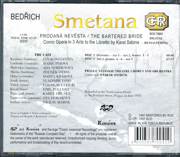 | Künstler | Bedřich Smetana | Sbor Národního Divadla | Orchestr Národního Divadla | Otakar Ostrčil | Emil Pollert | Ada Nordenová | Jaroslav Gleich | Vladimír Toms |