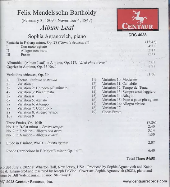 | Titel | Album Leaf: Piano Works By Felix Mendelssohn |