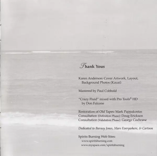 Spirits Burning: Crazy Fluid Die Version auf CD in Standard- Auflage. Diese besondere Auflage wurde veröffentlicht in UK im Verlag Voiceprint am 2. März 2010. Album Genres übergreifend Rock, Elektronische Musik, Psychedelic rock und Space Rock.