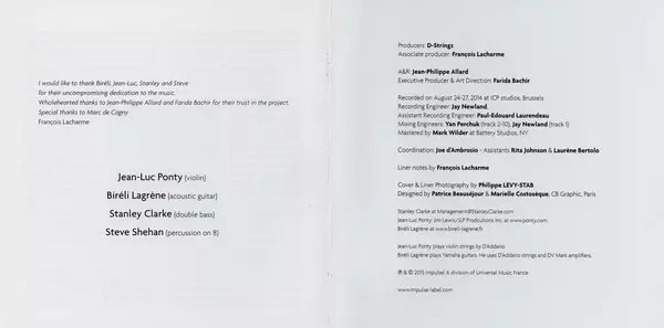 | Künstler | Stanley Clarke | Jean-Luc Ponty | Biréli Lagrène |