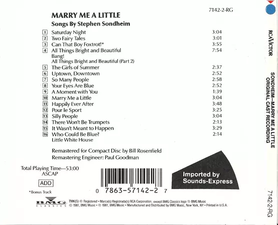 | Titel | Marry Me A Little (Original Cast Recording) |