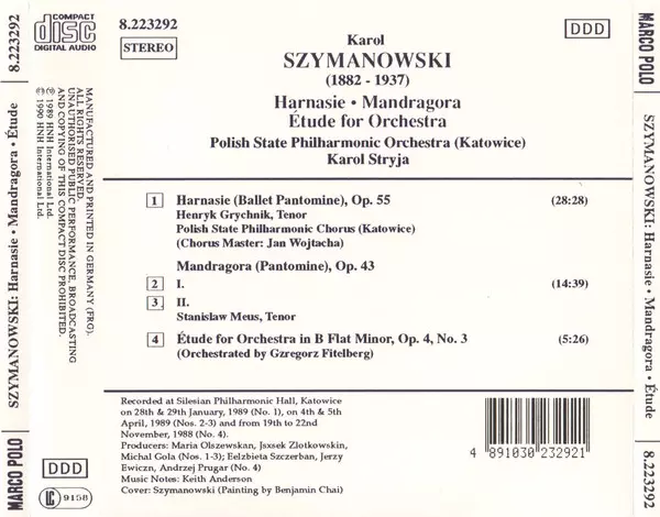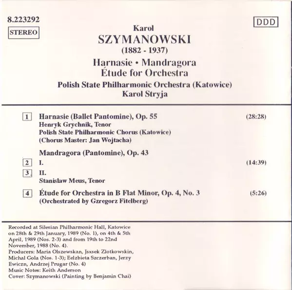 | Künstler | Karol Szymanowski | Orkiestra Symfoniczna Filharmonii Śląskiej | Karol Stryja | Chór Filharmonii Śląskiej | Henryk Grychnik | Stanislaw Meus |
