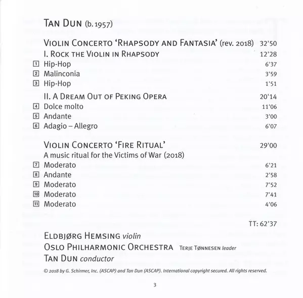 | Künstler | Tan Dun | Oslo Filharmoniske Orkester | Eldbjørg Hemsing |