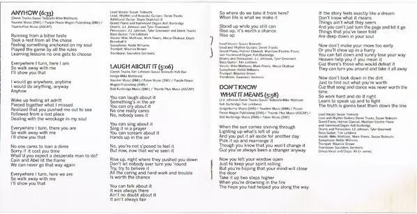 Bass Guitar Tim Lefebvre | Drums, Percussion J.J. Johnson (8), Tyler Greenwell | Electric Piano [Wurlitzer], Organ [Hammond], Flute Kofi Burbridge | Lead Vocals Susan Tedeschi | Rhythm Guitar, Electric Guitar [Leslie Guitar], Lead Guitar, Percussion Derek Trucks | Saxophone Kebbi Williams | Trombone Saunders Sermons | Trumpet Maurice Brown (3) | Vocals Alecia Chakour, Mark Rivers, Mike Mattison | Written-By Derek Trucks, Mike Mattison, Susan Tedeschi
