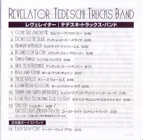 Tedeschi Trucks Band: Revelator Die Version auf CD in Standard- Auflage. Diese besondere Auflage wurde veröffentlicht in Japan im Verlag Sony Music Japan International Inc. am 8. Juni 2011.