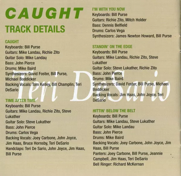 Backing Vocals Bruce Hornsby, Jim Haas, Joey Carbone, Jon Joyce, Teri DeSario | Bass John Pierce | Drums Carlos Vega | Guitar Michael Landau, Richie Zito, Steve Lukather | Handclaps [Handclappers] Bill Purse, Jim Haas, Jon Joyce, Teri DeSario | Keyboards Bill Purse | Soloist [Guitar Solo] Steve Lukather | Written-By Bill Purse, Joey Carbone, Richie Zito, Teri DeSario