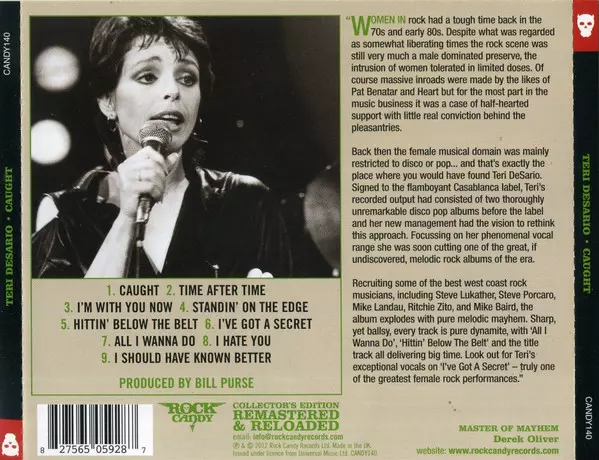 Teri Desario: Caught LTD Die Version auf CD in limitierte remastered Auflage. Diese besondere Auflage wurde veröffentlicht in UK im Verlag Rock Candy am 8. November 2024. Album Genres übergreifend Rock, Pop, Ballade, Pop Rock und AOR.