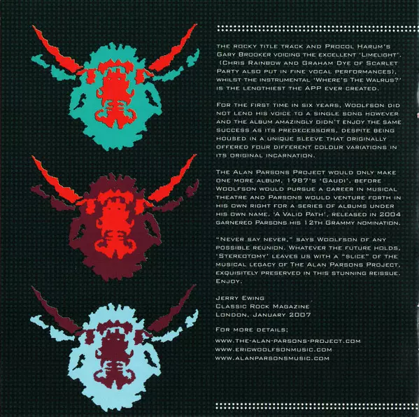 The Alan Parsons Project: Stereotomy Die Version auf CD in remastered Auflage. Diese besondere Auflage wurde veröffentlicht in Europa im Verlag Sony BMG Music Entertainment In Zusammenarbeit mit Arista und Legacy am 4. Mai 2009. Album Genres übergreifend Rock, Pop, Pop Rock und Art Rock. Expanded.