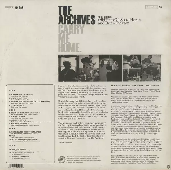 The Archives: Carry Me Home Die Version auf Vinyl 2LP in Standard- Auflage. Diese besondere Auflage wurde veröffentlicht in USA und Vereinigtes Königreich im Verlag Montserrat House am 11. Dezember 2020. Album kann als folgendes Genre klassifiziert werden Reggae.