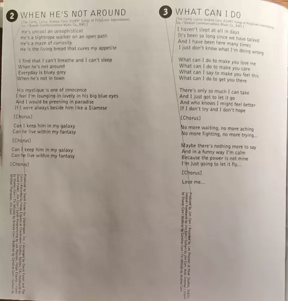 Drums John Robinson (2) | Guitar Jim Corr, Tim Pierce | Keyboards David Foster, Jim Corr | Mandolin Tim Pierce