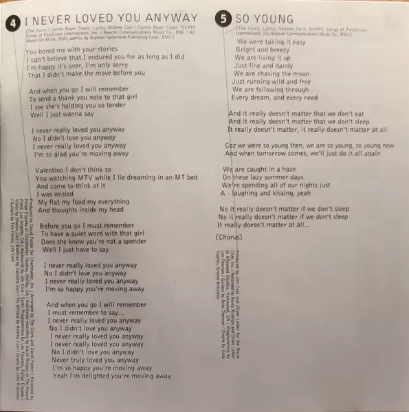 Bodhrán Caroline Corr | Drums John Robinson (2) | Guitar Jim Corr, Tim Pierce | Keyboards Jim Corr | Written-By Carole Bayer Sager