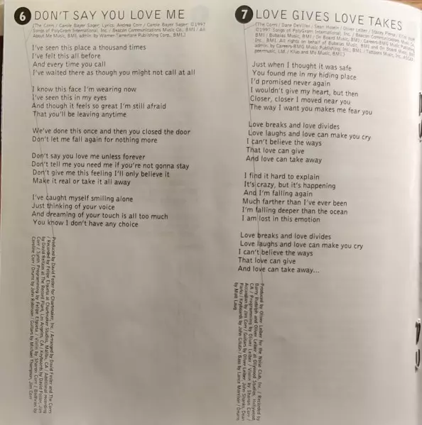 Bodhrán Caroline Corr | Drums John Robinson (2) | Guitar Jim Corr, Michael Thompson | Keyboards David Foster, Jim Corr | Written-By Carole Bayer Sager