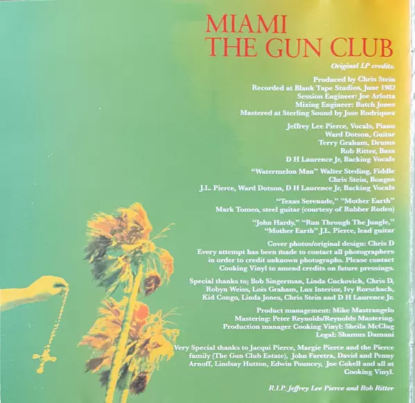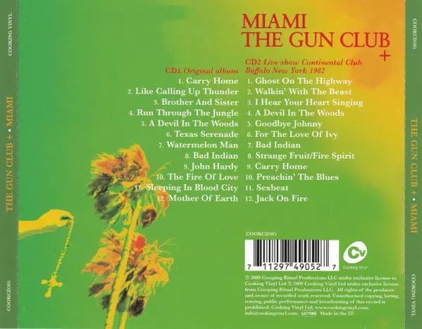 The Gun Club: Miami DLX Die Version auf 2CD in deluxe Auflage. Diese besondere Auflage wurde veröffentlicht in Europa im Verlag Cooking Vinyl am 27. Oktober 2009. Album Genres übergreifend Rock, Punk und Blues-Rock.