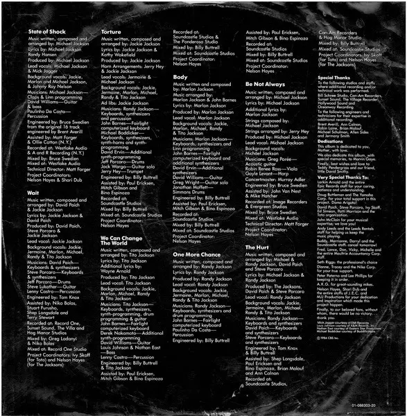 Backing Vocals Jackie Jackson, Jermaine Jackson, Marlon Jackson, Michael Jackson, Randy Jackson, Tito Jackson | Engineer Bill Bottrell, Tom Knox | Engineer [Assistant] Ann Calnan, Bino Espinoza, Brian Malouf, Paul Ericksen, Shep Lonsdale | Keyboards David Paich, Randy Jackson, Steve Porcaro | Lead Vocals Randy Jackson | Mixed By Bill Bottrell | Producer David Paich, Steve Porcaro, The Jacksons | Synthesizer David Paich, Randy Jackson, Steve Porcaro | Written-By, Arranged By David Paich, Michael Jackson, Randy Jackson, Steve Porcaro