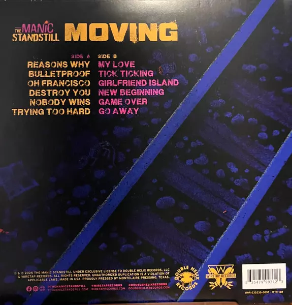 The Manic Standstill: Moving Die Version auf Vinyl LP in Standard- Auflage. Diese besondere Auflage wurde veröffentlicht in USA und Kanada im Verlag Double Helix Records (2) In Zusammenarbeit mit Wiretap Records am 17. Oktober 2025. Album Genres übergreifend Rock, Punk, Garage Rock, Power Pop und Pop Punk.
