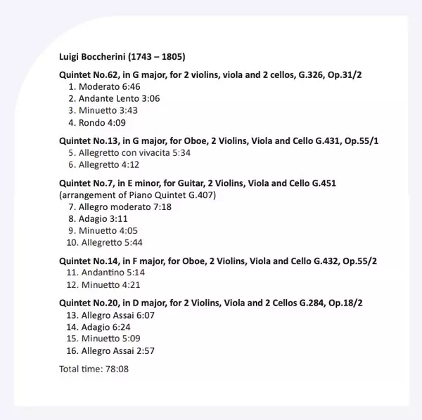 | Titel | Fiesta Boccherini 5 Quinteetti |