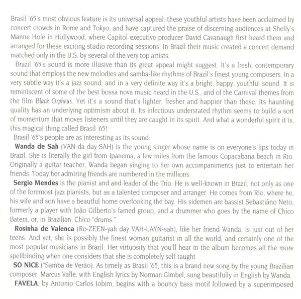 | Künstler | Rosinha de Valença | Wanda Sá | The Sérgio Mendes Trio |